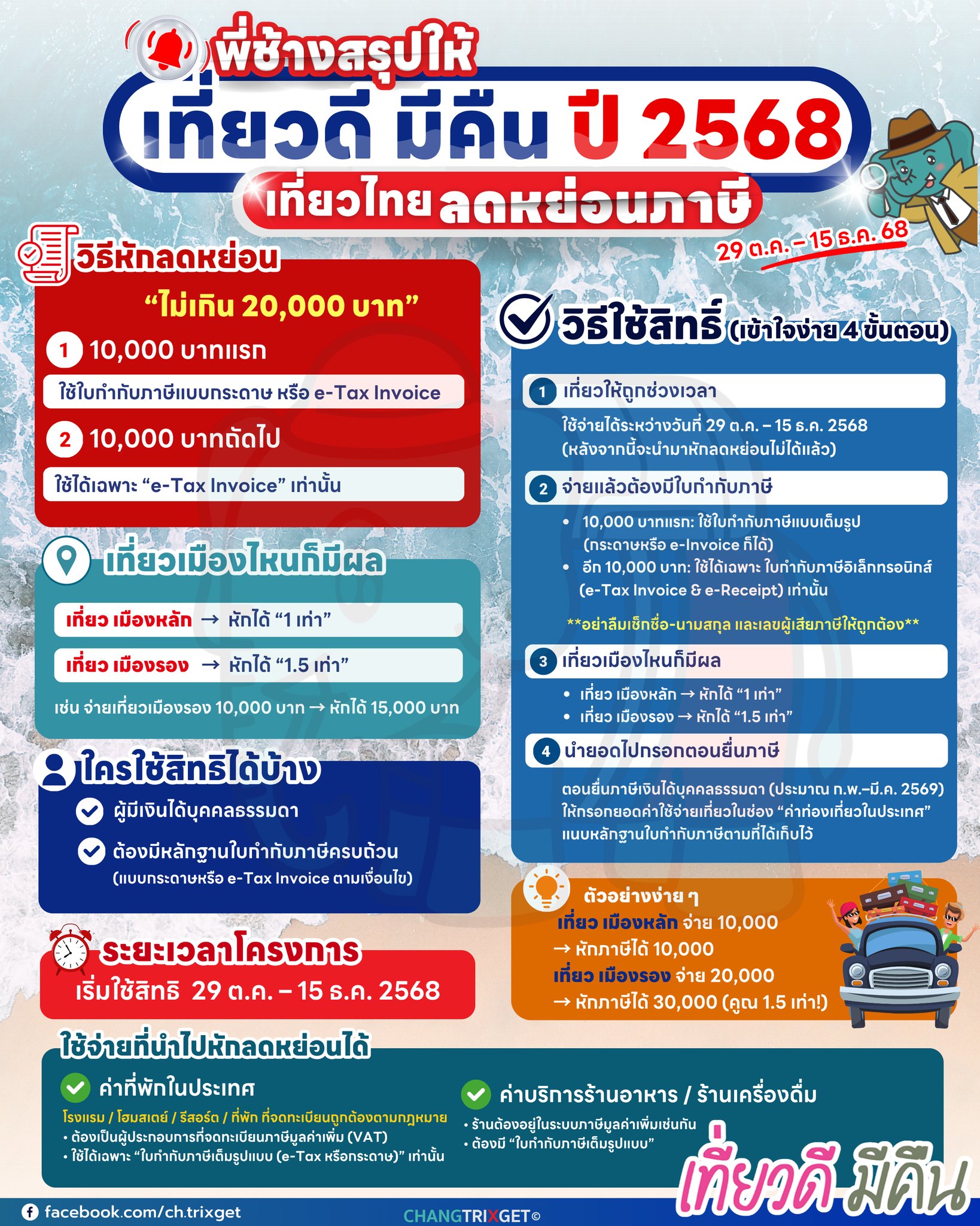 ใช้จ่ายได้ระหว่างวันที่ 29 ตุลาคม – 15 ธันวาคม 2568 โดยต้องมีหลักฐานใบกำกับภาษีที่ถูกต้องตามเงื่อนไข